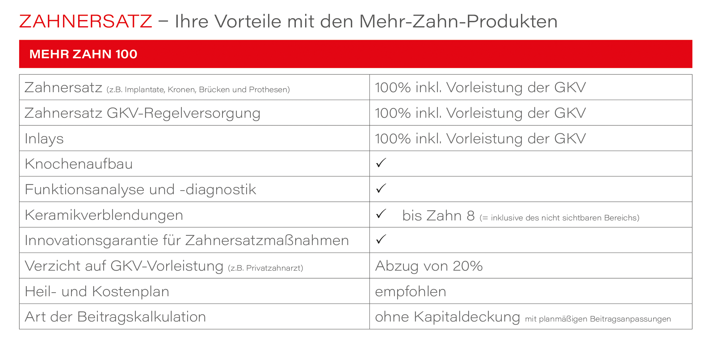 Den Versicherungsschutz der gesetzlichen Krankenversicherung (GKV) können Sie mit unseren leistungsstarken Zusatztarifen individuell ergänzen. Im Bereich Zahngesundheit geben wir Ihnen mit Leistungen für die Prophylaxe bis hin zur vollständigen Kostenübernahme bei Zahnersatz viele Gründe, mehr zu lächeln.