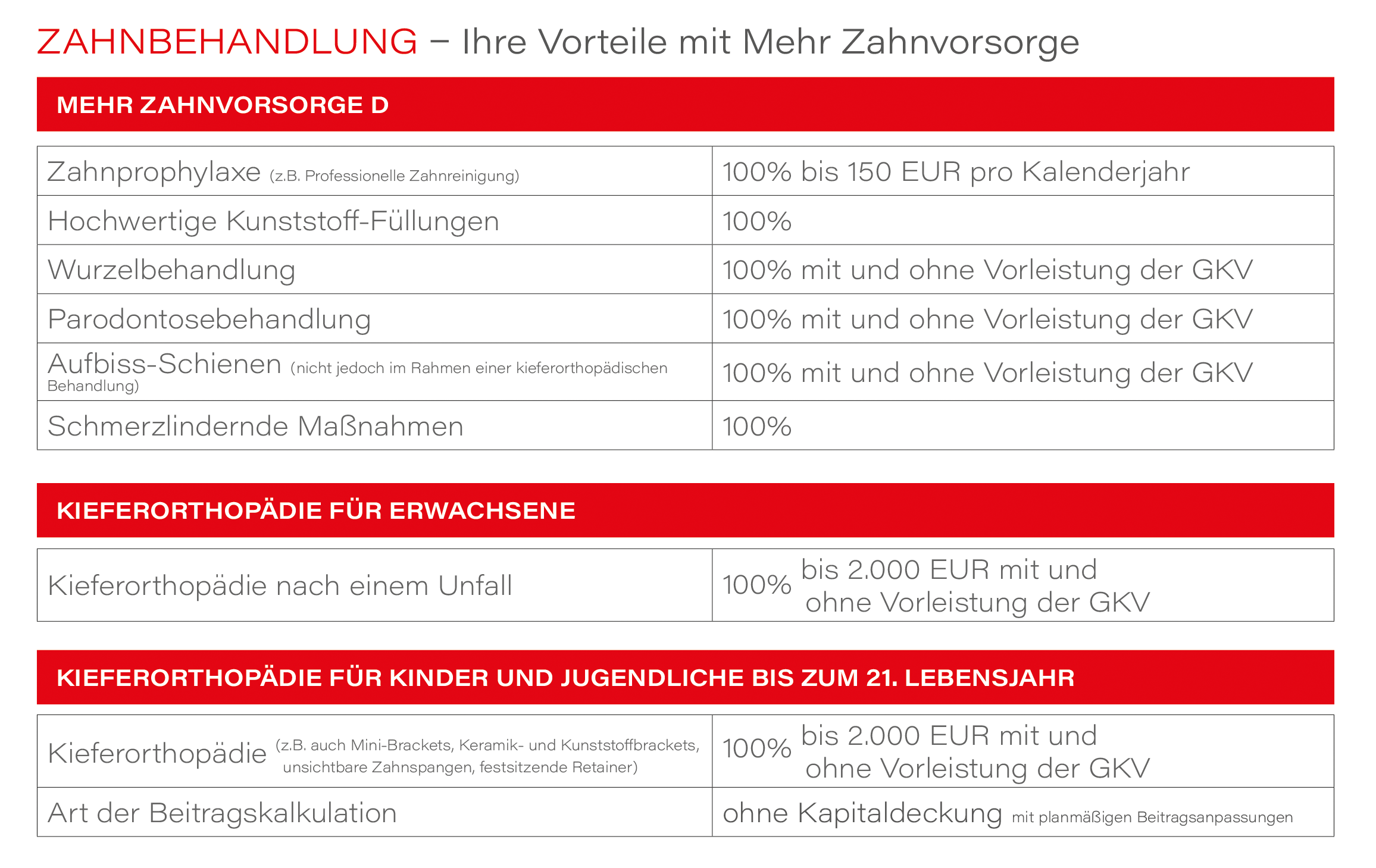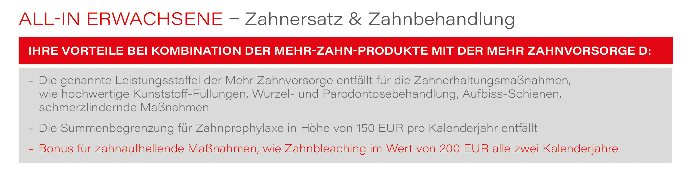 Die Begrenzungen gelten nicht bei: Professioneller Zahnreinigung und zahnmedizinischer Prophylaxe + Unfallbedingter Behandlung